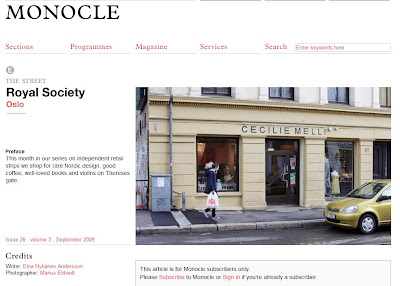 En av våre snille kunder gjorde oss nettopp oppmerksom på en artikkel om Cecilie Melli i Monocle i høst. Vi husket jo at journalisten var her, men det var midt i siste innspurten av brudesesongen, og mildt sagt veldig hektisk! Vi prøver å få tak i bladet, men her er et lite klipp fra nettsiden monocle.com i mellomtiden.